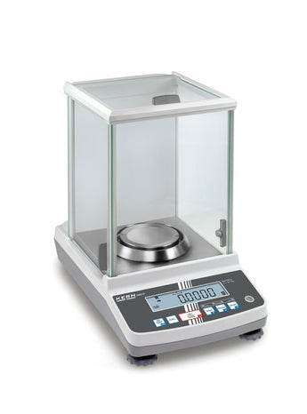 Die Präzisionswaage ABJ 220-4NM mit Kalibrierung von Kern&Sohn hat eine maximale Kapazität von 220 g und eine Ablesbarkeit von 0,1 mg.